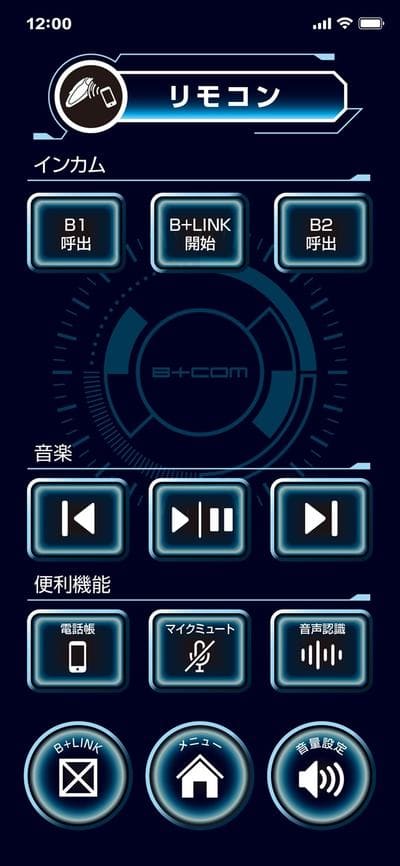 B+COMで出来る事の操作をこのリモコン画面1つで行う事が出来て、ヘルメットに取り付けているインカムで操作するのに不安が残る人は『目で見て操作』を行う事が出来ます。