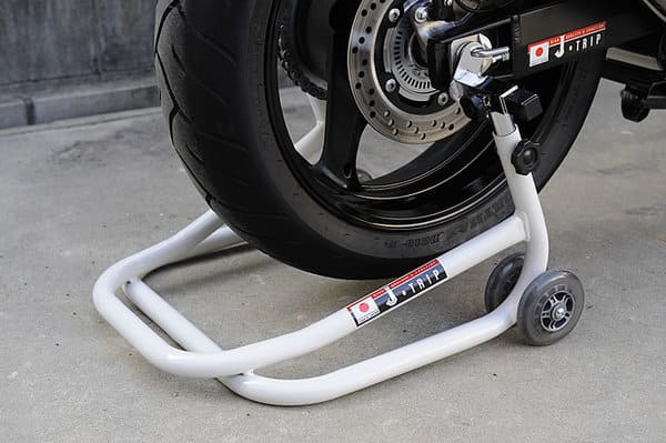 ▲メンテナンススタンドを持っておくのが良いかと。特に「フロント・リア兼用」のやつ。