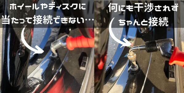 そして空気圧調整が出来ないガソリンスタンドの空気圧調整ノズルも真っすぐであり、長いのでホイールに干渉してしまうという点が問題になっているはずです!違いますか?そうですよね?