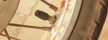 ガソリンスタンドで空気圧調整が出来ないと困っているライダーさんのバイクって下の画像のようにエアバルブがホイール内側から真っすぐ出ているタイプでは無いですか?