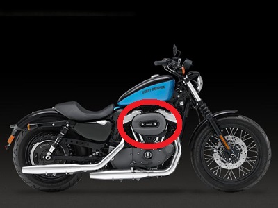 ▲ハーレー:ナイトスターです。赤丸部分にエアクリーナーがあります。